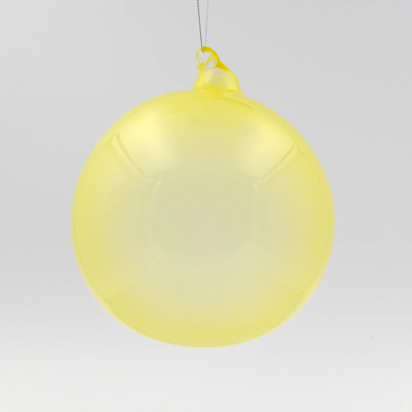 Illuminate your holiday décor with the soft glow of the 150mm Pale Yellow Bubblegum Glass Ball from Jim Marvin’s iconic ornament collection. Handcrafted from premium glass, this oversized piece features the designer’s signature “bubblegum” finish—a flawless, high-gloss surface that reflects light with radiant brilliance. The delicate pale yellow hue adds warmth and charm, pairing beautifully with whites, metallics, pastels, or classic holiday tones.