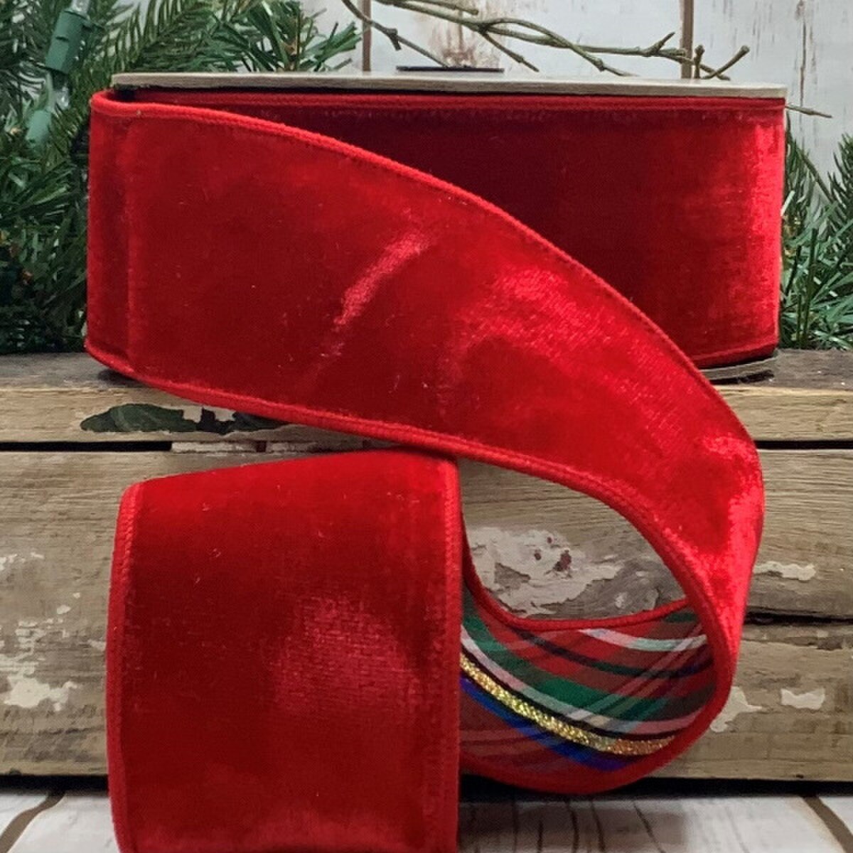 2.5" Red Velvet with Nutcracker Plaid Backing