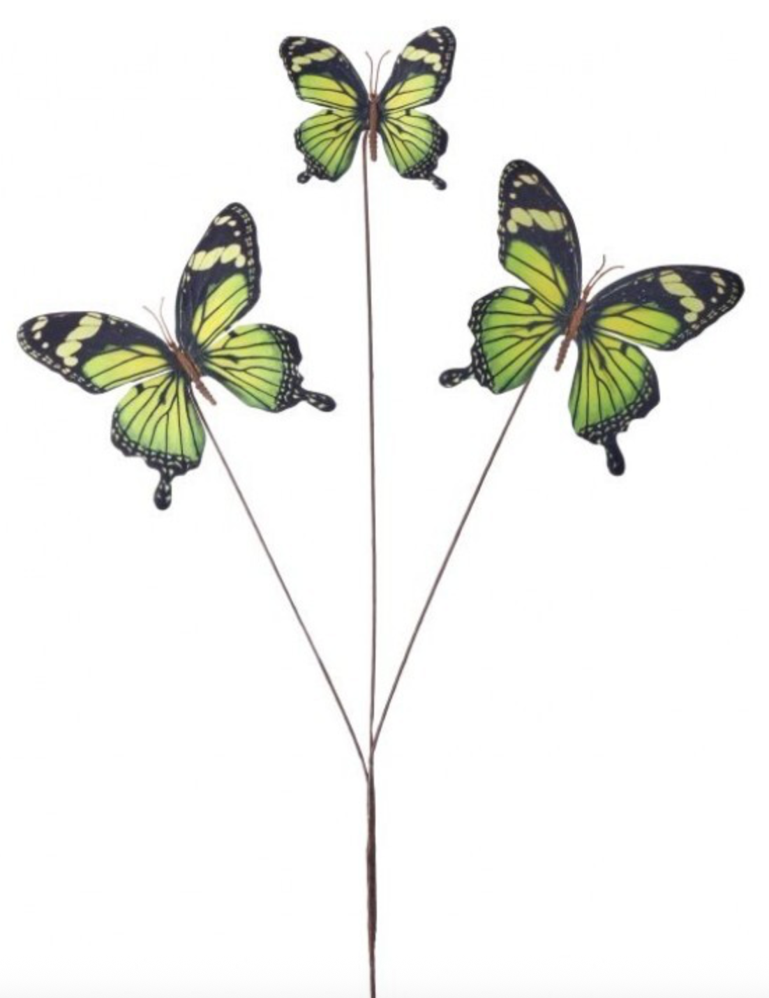 Add a vibrant burst of color and charm with the 28" Grand Summer Butterfly Spray, available in green or yellow and sold separately. This elegant spray features delicate butterflies perched on long, slender stems, surrounded by lush greenery that captures the essence of a warm, sunny day. The realistic design and soft, natural hues make it a perfect addition to floral arrangements, wreaths, or as a standalone accent in vases.