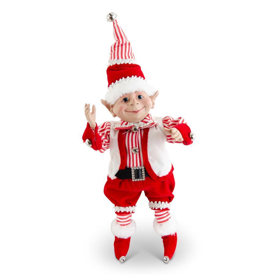 Whimsical, festive, and full of personality, this 22" Posable Elf in Red Velvet with Bells makes a stunning addition to your holiday décor. Dressed in luxurious red velvet trimmed with gold details and jingle bells, this larger-scale elf brings movement and cheer wherever he’s placed. His fully posable body allows for endless creative styling — perch him on a mantel, tuck him into a garland, or let him sit playfully among your tree branches.