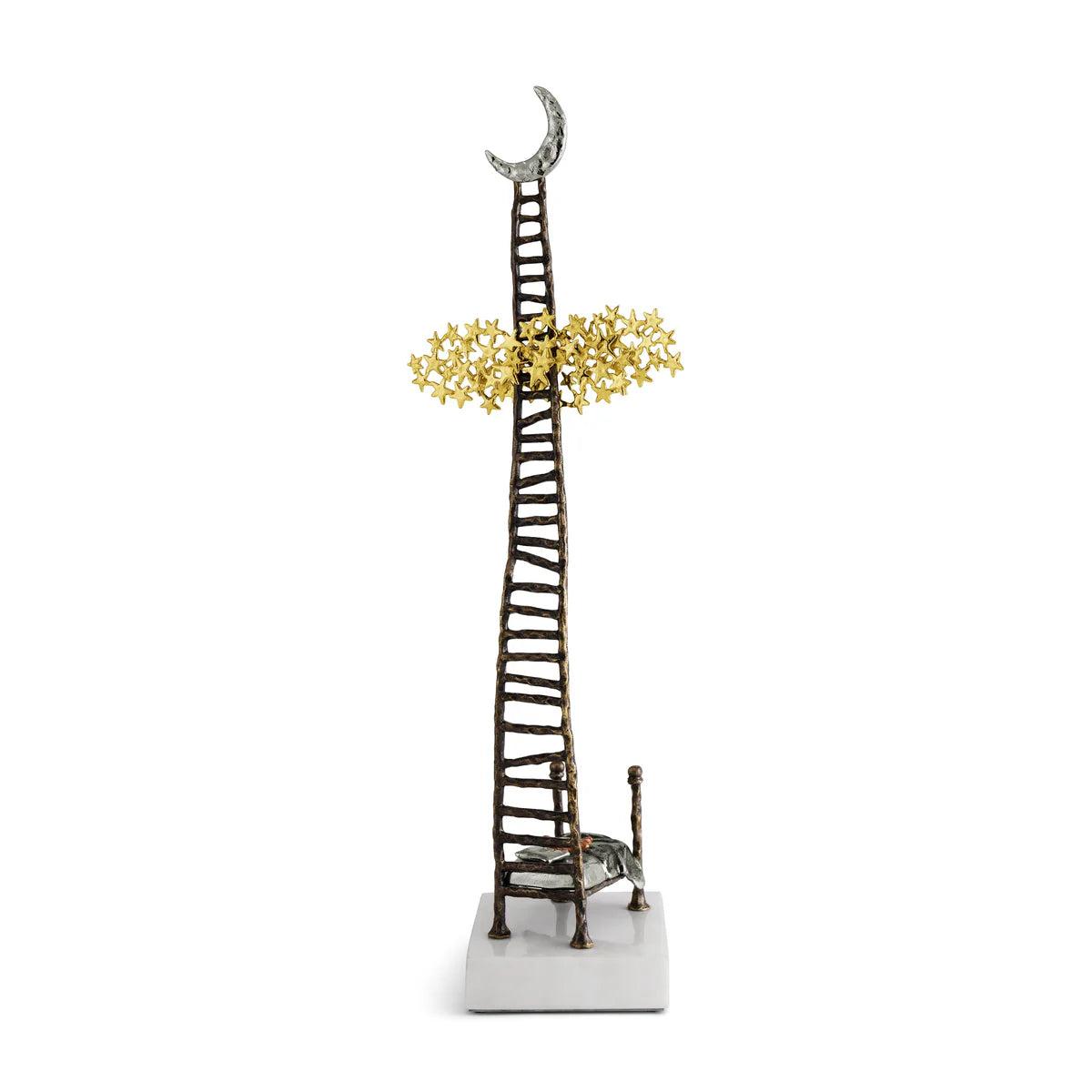 The Dream Sculpture by Michael Aram is a limited-edition, handcrafted masterpiece that celebrates imagination, wonder, and the magic of childhood. Inspired by the beloved children’s book Papa, Please Get the Moon for Me, each sculpture captures the story of a child dreaming of dancing with the moon, with personal touches including a pillow and Piggy—Michael’s son’s cherished stuffed animal.