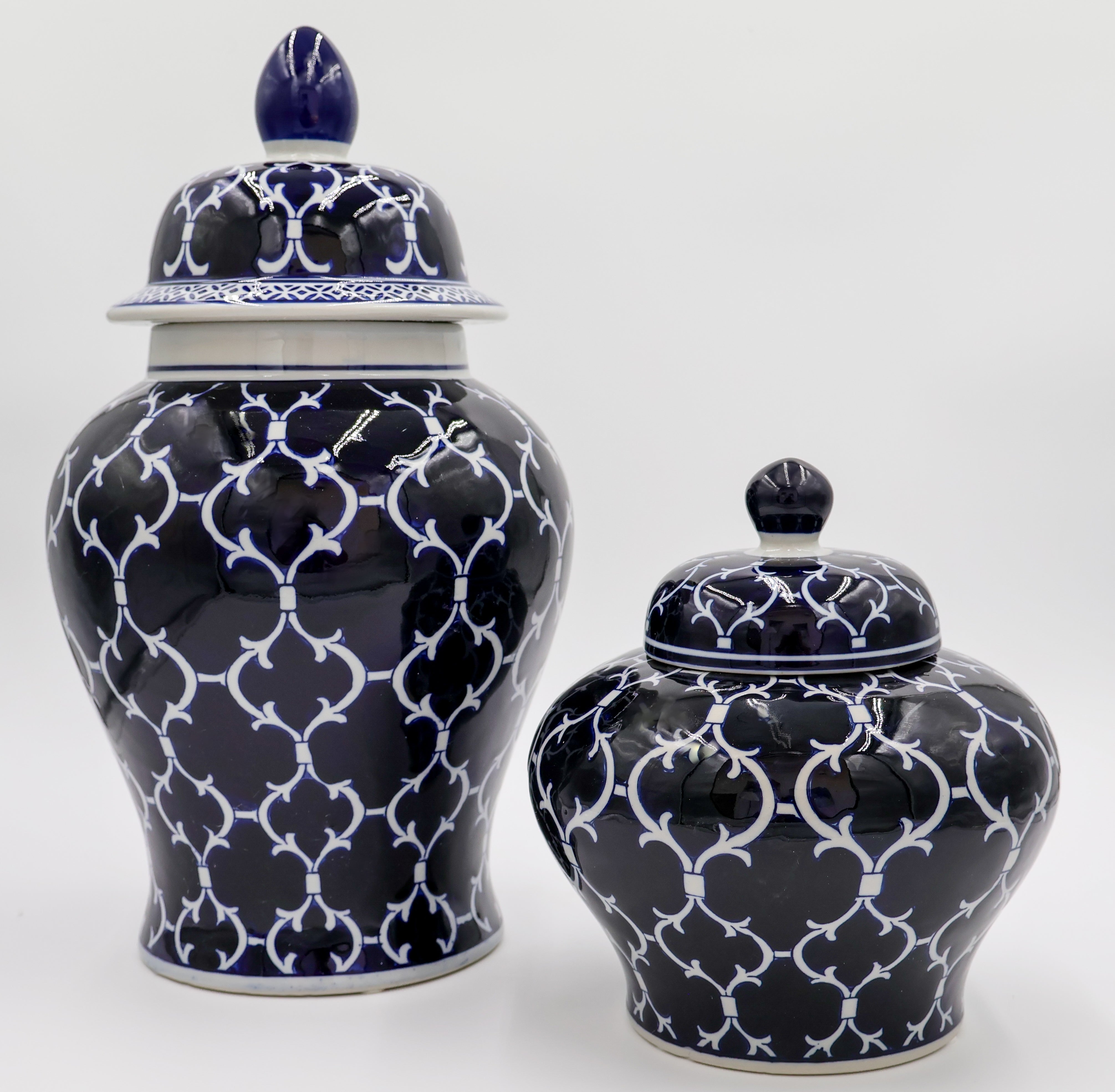 Blue & White Quatrefoil Lidded Ceramic Vase 18"